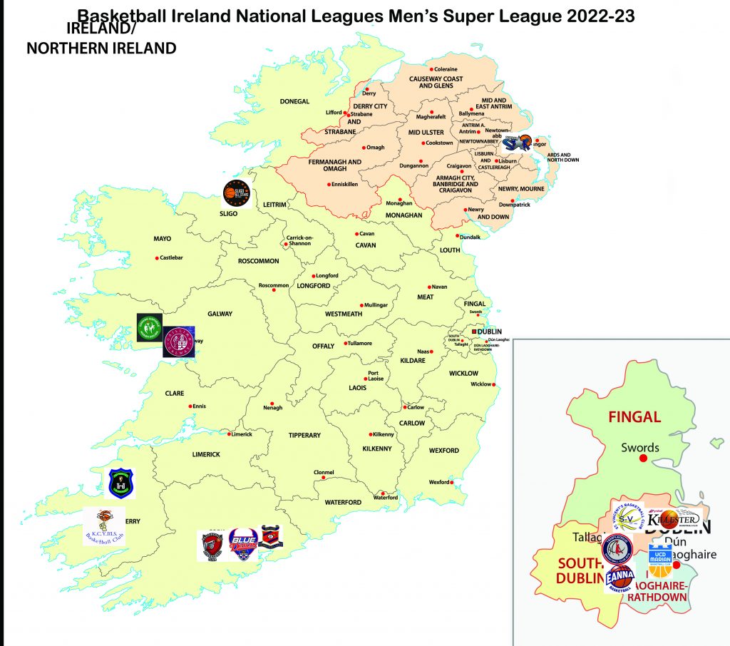 The Basketball Ireland National League MissQuote.ie Women’s Super League (WSL) 2022-23 is the highest level of Women’s Basketball in Ireland. The WSL features 10 teams covering each province. Leinster’s biggest county population-wise, Dublin is represented by three teams: DCU Mercy (Fingal County Borough), Killlester and Trinity Meteors (Dublin City Borough), while Leixlip Amenities Liffey Celtics from Co. Kildare represent Leinster Province. Munster teams representing Cork are The Address UCC Glanmire, Singleton SuperValu Brunell, and i3PT Fr. Mathews. Waterford Wildcats represent Provincial Munster. University of Galway Mystics represent Connacht and Ulster University based in Jordanstown, Antrim and Newtownabbey Borough, Co. Antrim represent Ulster.